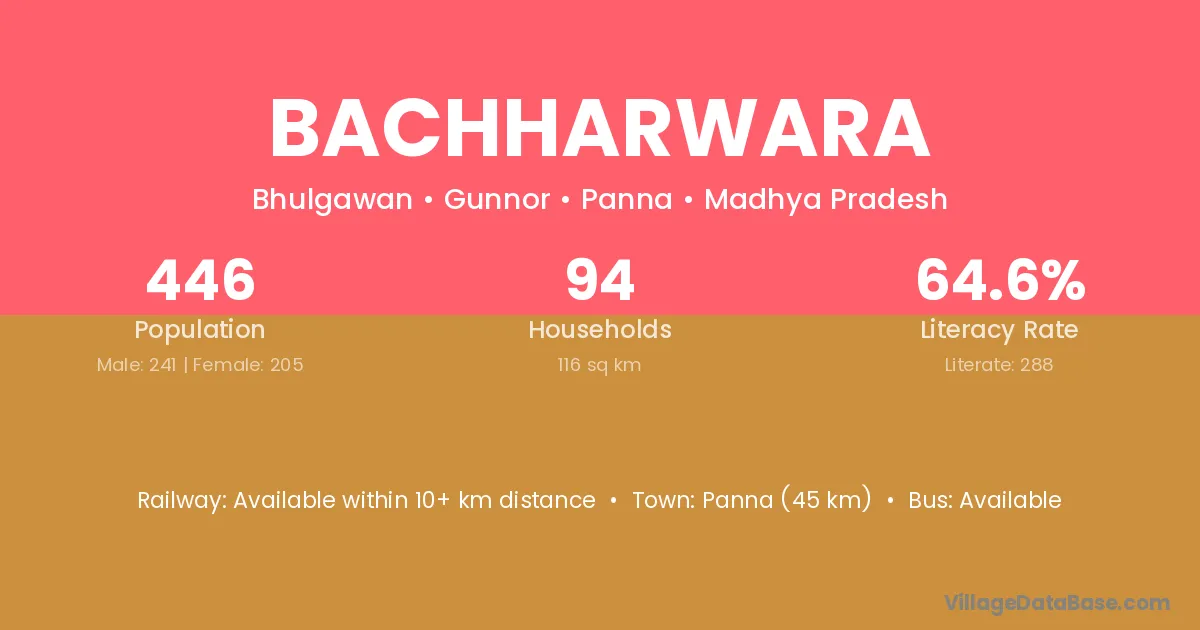 Katni (26 km) is the nearest town to Bachharwara village for major economic activities and is located approximately 26 km away.