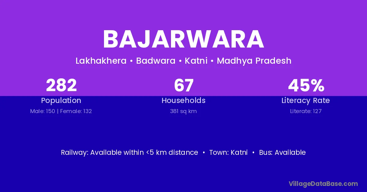 Bajarwara village has a total population of 282 people, of which 150 are males and 132 are females.