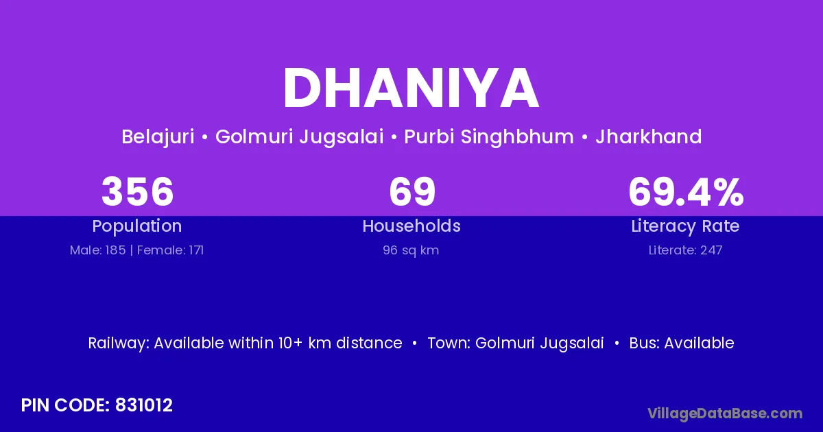 Katni (52 km) is the nearest town to Dhaniya village for major economic activities and is located approximately 52 km away.