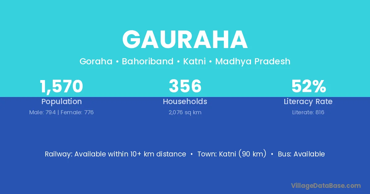 Gauraha village has a total population of 1,570 people, of which 794 are males and 776 are females.