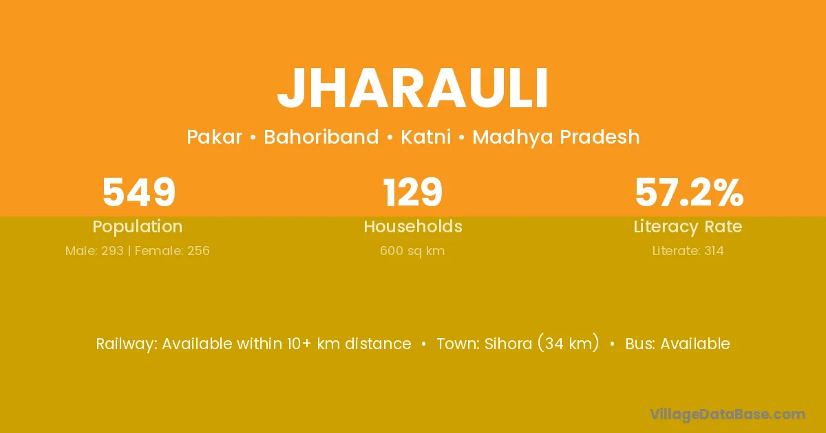 Sihora (34 km) is the nearest town to Jharauli village for major economic activities and is located approximately 34 km away.