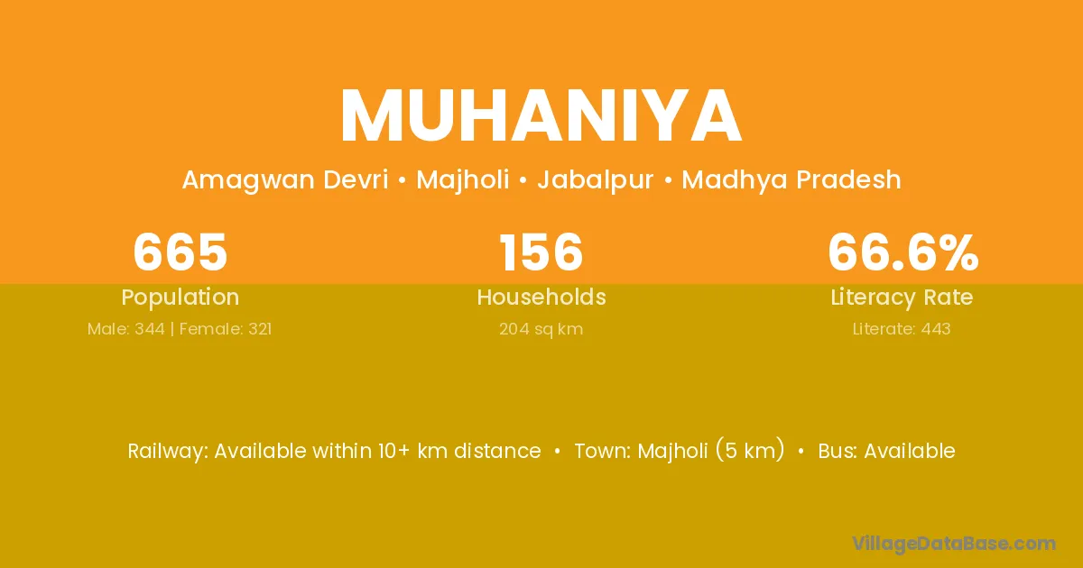 Katni (35 km) is the nearest town to Muhaniya village for major economic activities and is located approximately 35 km away.