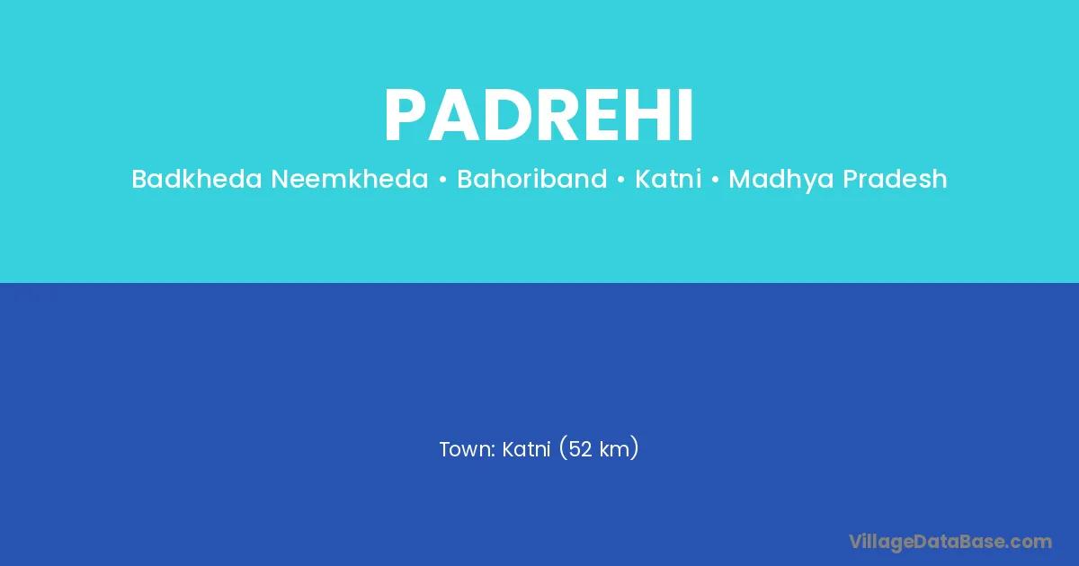 Katni (52 km) is the nearest town to Padrehi village for major economic activities and is located approximately 52 km away.