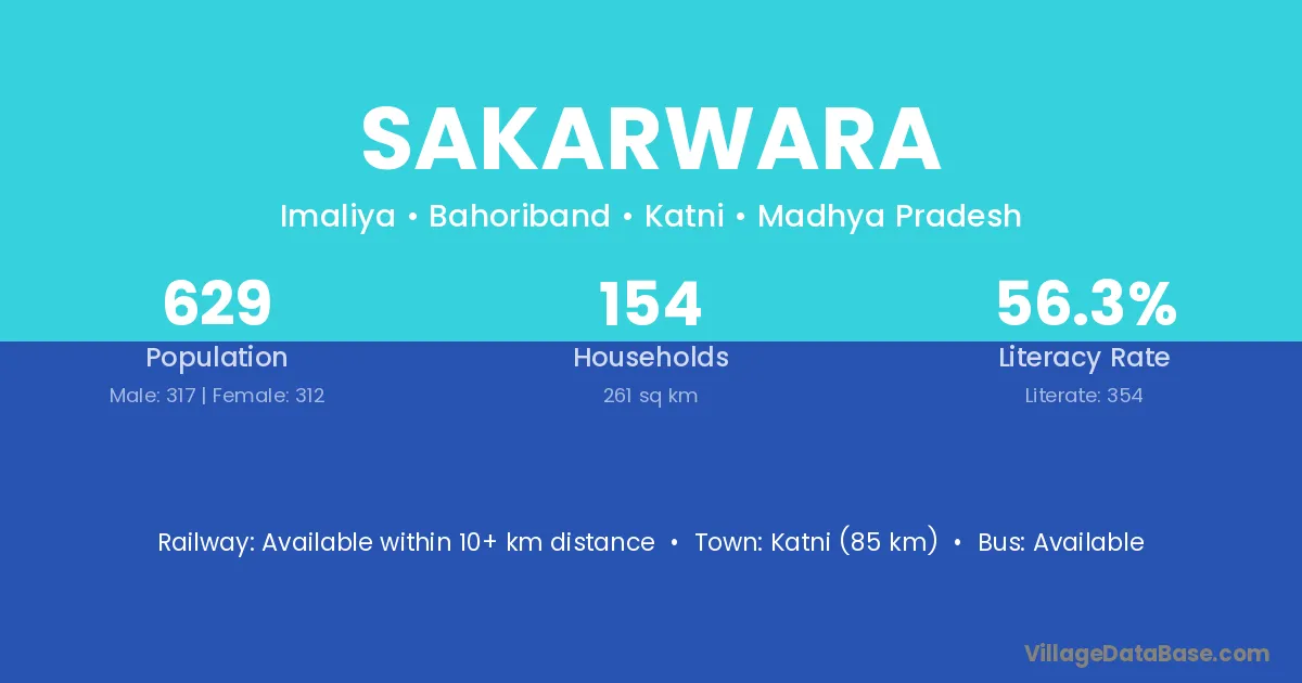 Katni (85 km) is the nearest town to Sakarwara village for major economic activities and is located approximately 85 km away.