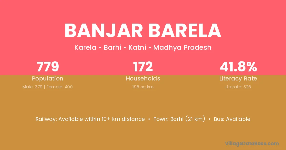 Barhi (21 km) is the nearest town to Banjar Barela village for major economic activities and is located approximately 21 km away.