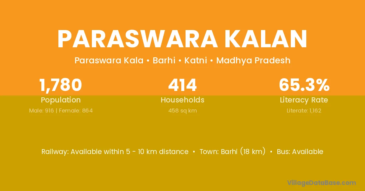 Paraswara Kalan village has a total population of 1,780 people, of which 916 are males and 864 are females.