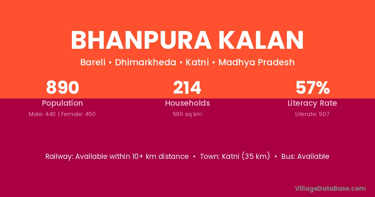 Katni (35 km) is the nearest town to Bhanpura Kalan village for major economic activities and is located approximately 35 km away.