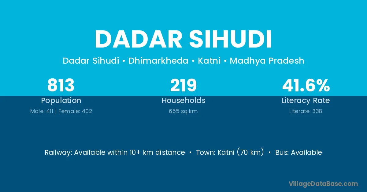 Katni (70 km) is the nearest town to Dadar Sihudi village for major economic activities and is located approximately 70 km away.