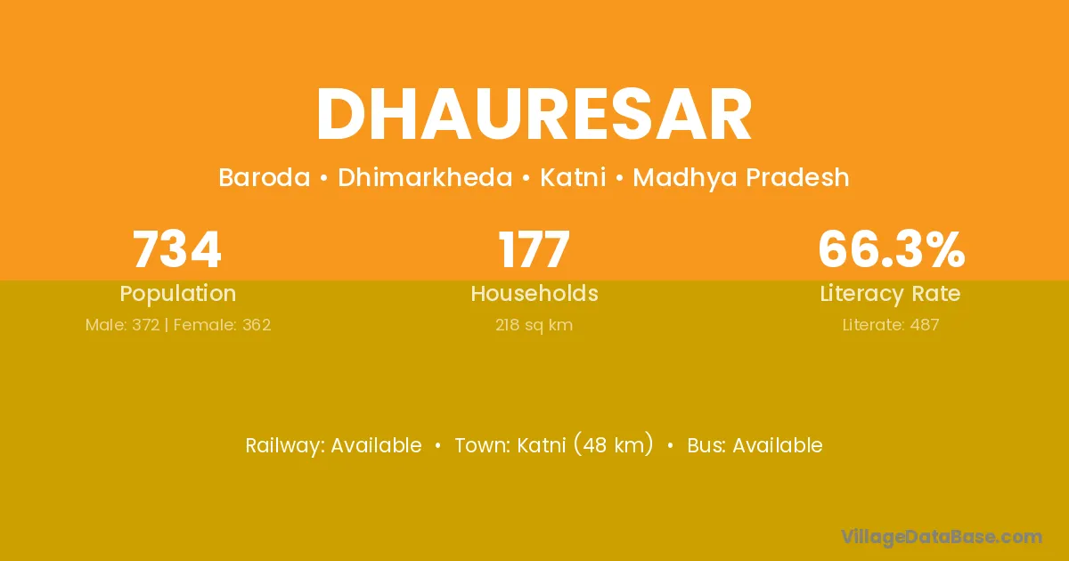 Katni (48 km) is the nearest town to Dhauresar village for major economic activities and is located approximately 48 km away.