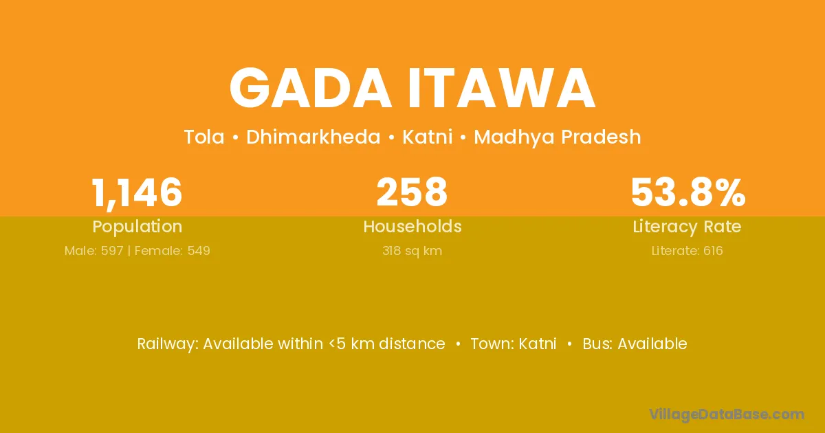 Katni is the nearest town to Gada Itawa village for major economic activities