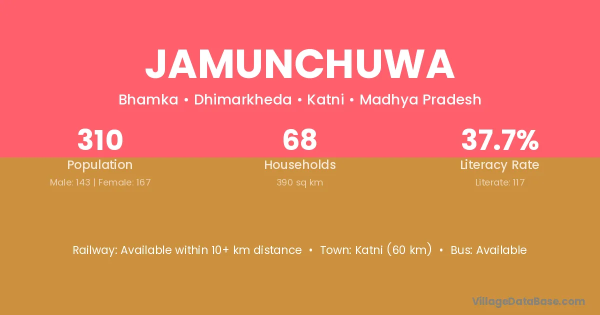 Katni (60 km) is the nearest town to Jamunchuwa village for major economic activities and is located approximately 60 km away.
