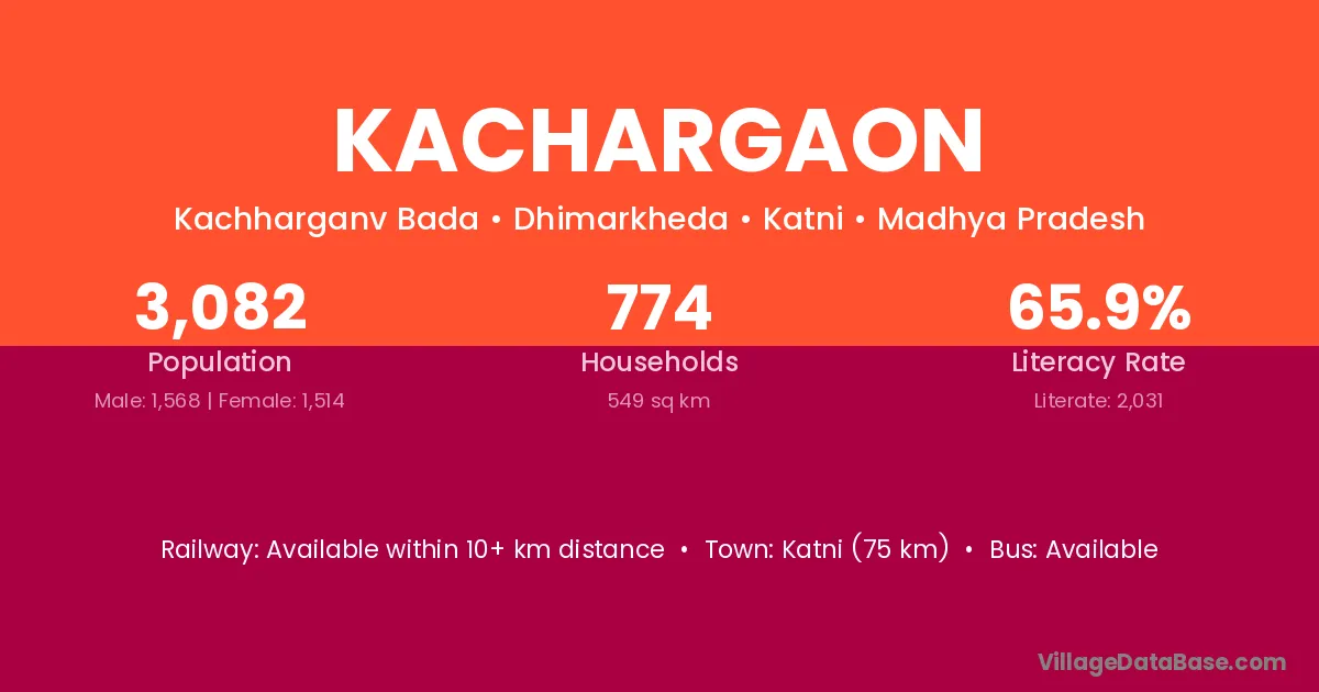 Katni (75 km) is the nearest town to Kachargaon village for major economic activities and is located approximately 75 km away.
