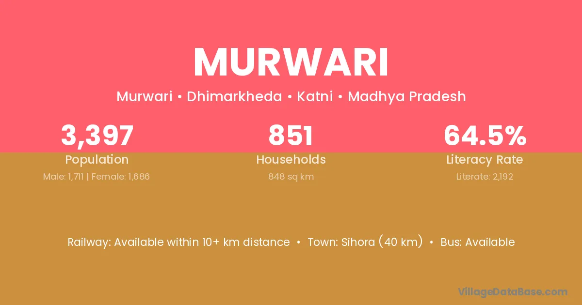 Sihora (40 km) is the nearest town to Murwari village for major economic activities and is located approximately 40 km away.