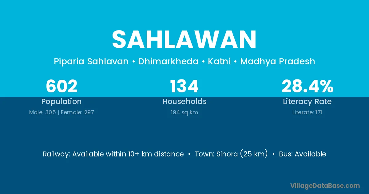 Sihora (25 km) is the nearest town to Sahlawan village for major economic activities and is located approximately 25 km away.