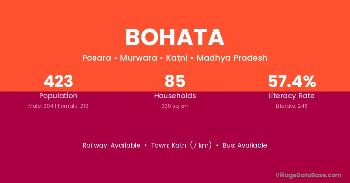 Katni (7 km) is the nearest town to Bohata village for major economic activities and is located approximately 7 km away.