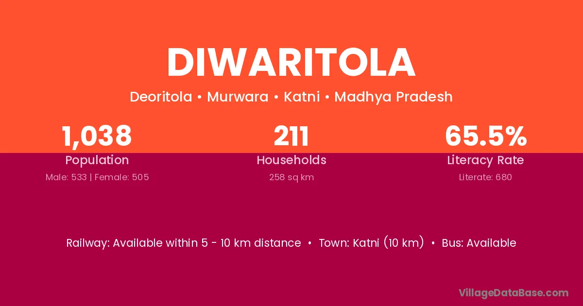 Katni (10 km) is the nearest town to Diwaritola village for major economic activities and is located approximately 10 km away.
