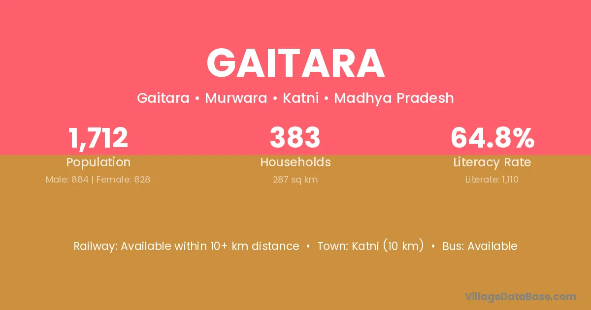 Katni (10 km) is the nearest town to Gaitara village for major economic activities and is located approximately 10 km away.