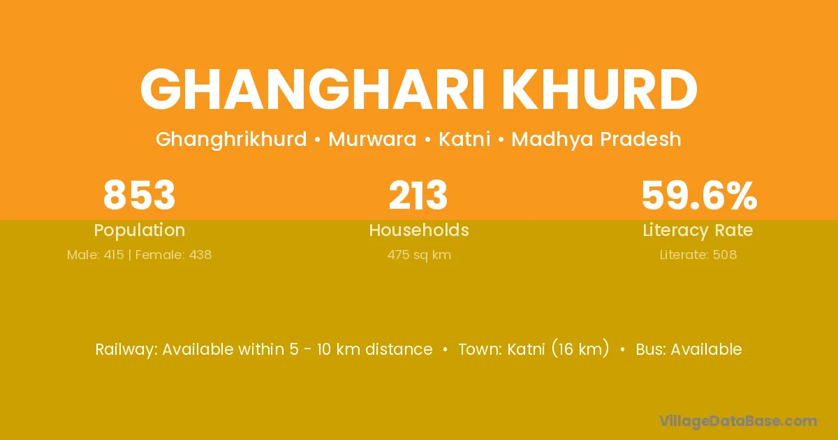 Ghanghari Khurd village has a total population of 853 people, of which 415 are males and 438 are females.