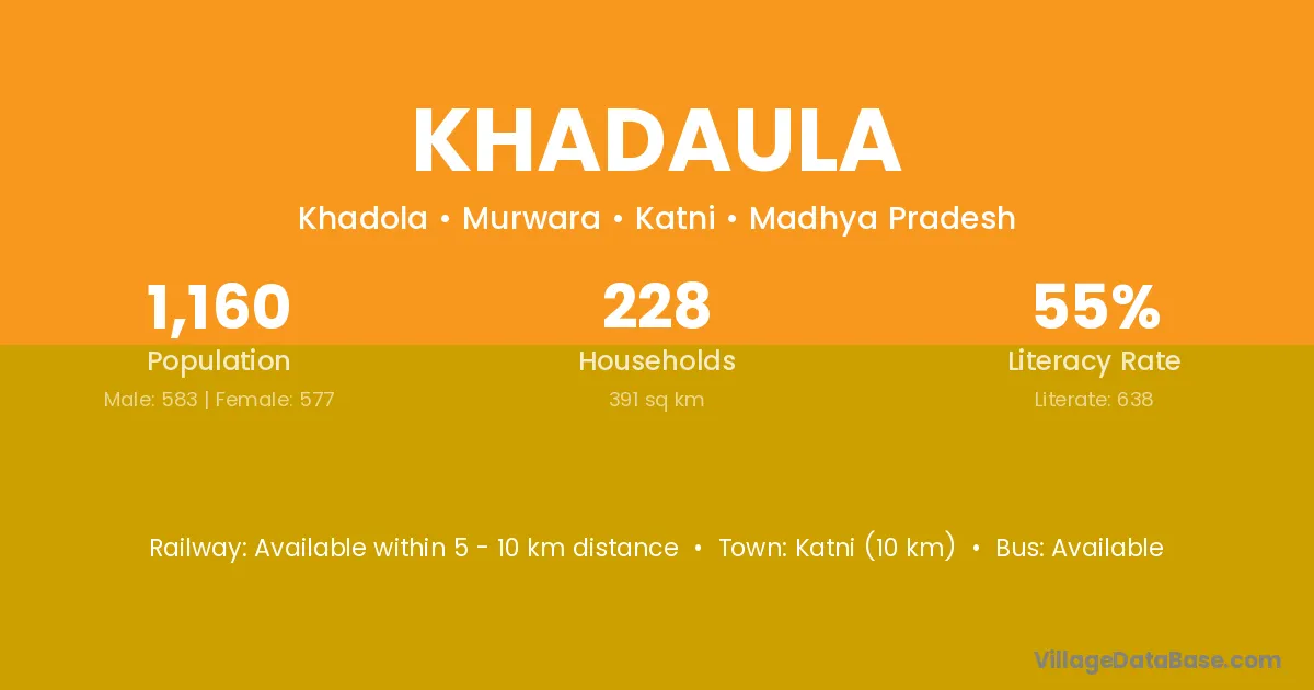Katni (10 km) is the nearest town to Khadaula village for major economic activities and is located approximately 10 km away.