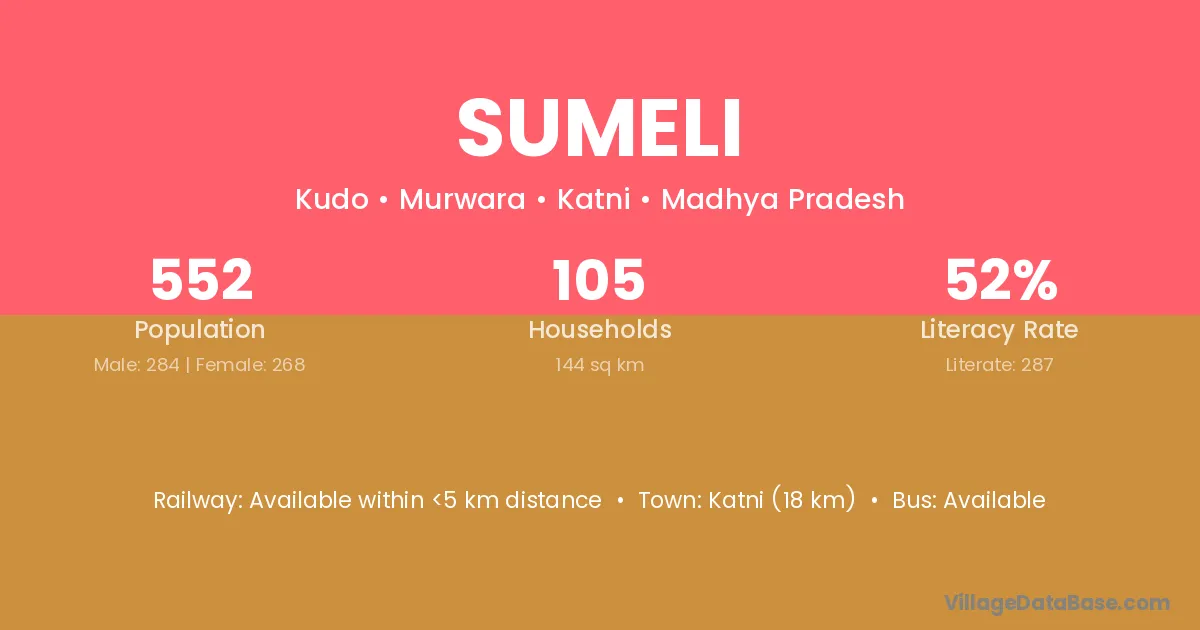 Katni (18 km) is the nearest town to Sumeli village for major economic activities and is located approximately 18 km away.