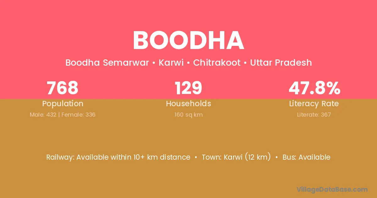 Katni (28 km) is the nearest town to Boodha village for major economic activities and is located approximately 28 km away.