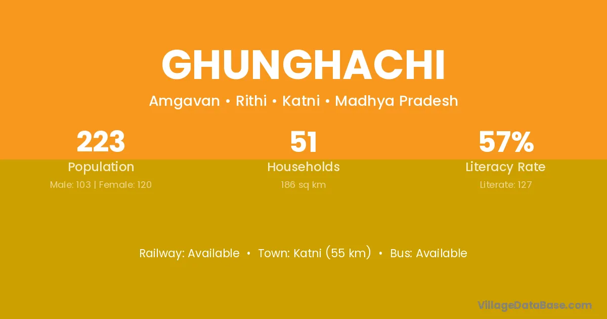 Katni (55 km) is the nearest town to Ghunghachi village for major economic activities and is located approximately 55 km away.