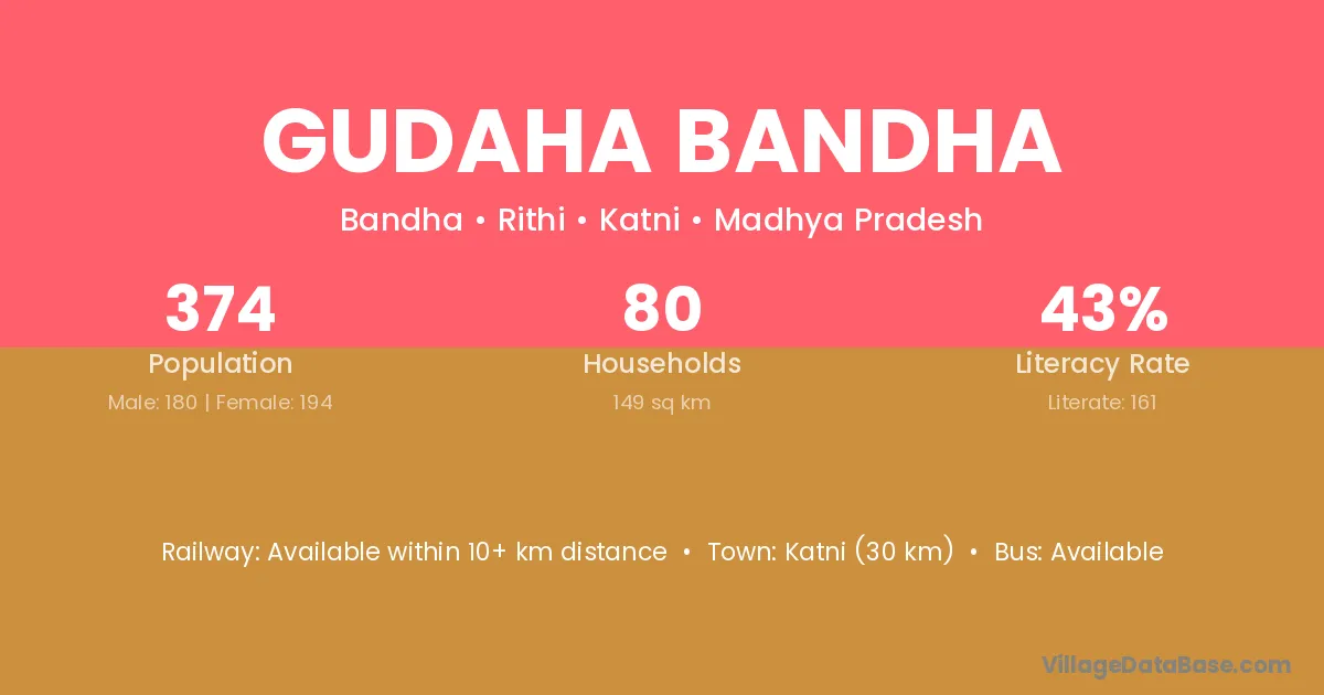 Katni (30 km) is the nearest town to Gudaha Bandha village for major economic activities and is located approximately 30 km away.