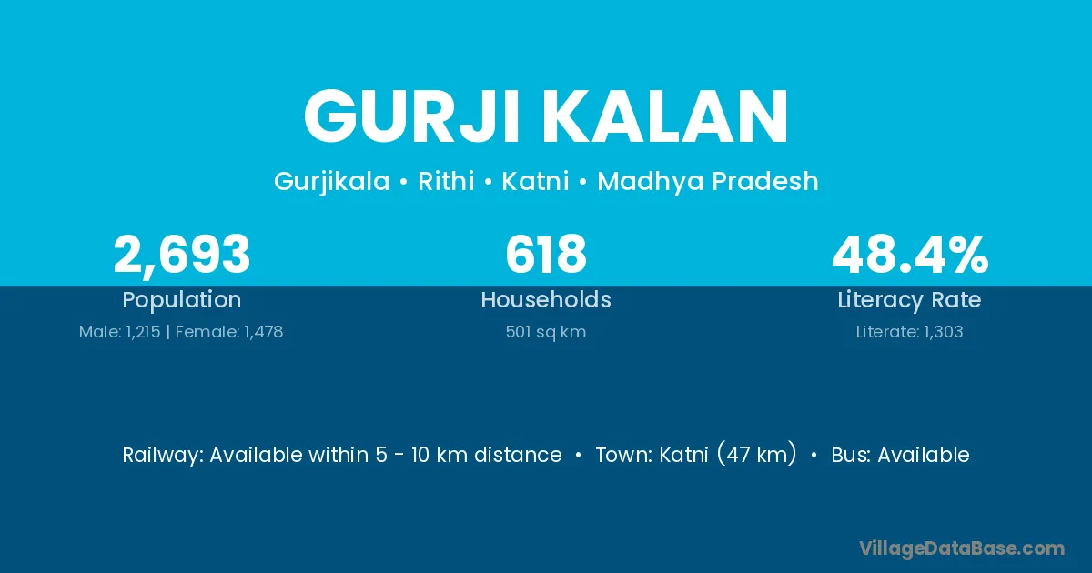 Katni (47 km) is the nearest town to Gurji Kalan village for major economic activities and is located approximately 47 km away.