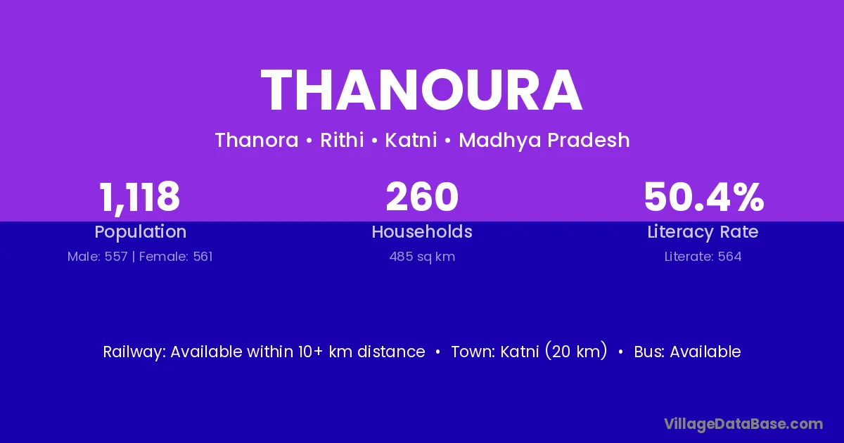 Katni (20 km) is the nearest town to Thanoura village for major economic activities and is located approximately 20 km away.