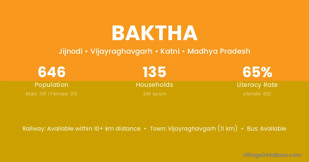 Vijayraghavgarh (11 km) is the nearest town to Baktha village for major economic activities and is located approximately 11 km away.