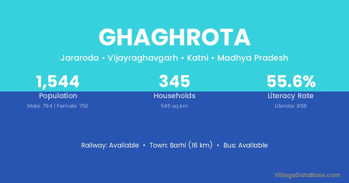 Barhi (16 km) is the nearest town to Ghaghrota village for major economic activities and is located approximately 16 km away.