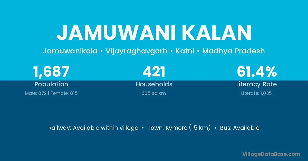 Kymore (15 km) is the nearest town to Jamuwani Kalan village for major economic activities and is located approximately 15 km away.