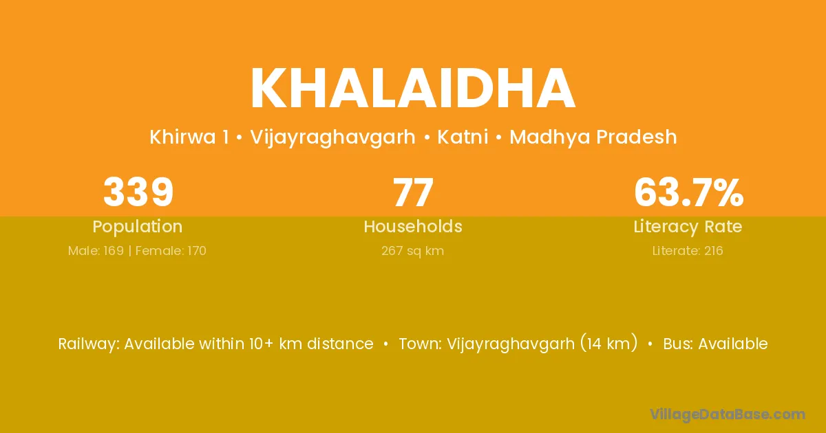 Vijayraghavgarh (14 km) is the nearest town to Khalaidha village for major economic activities and is located approximately 14 km away.