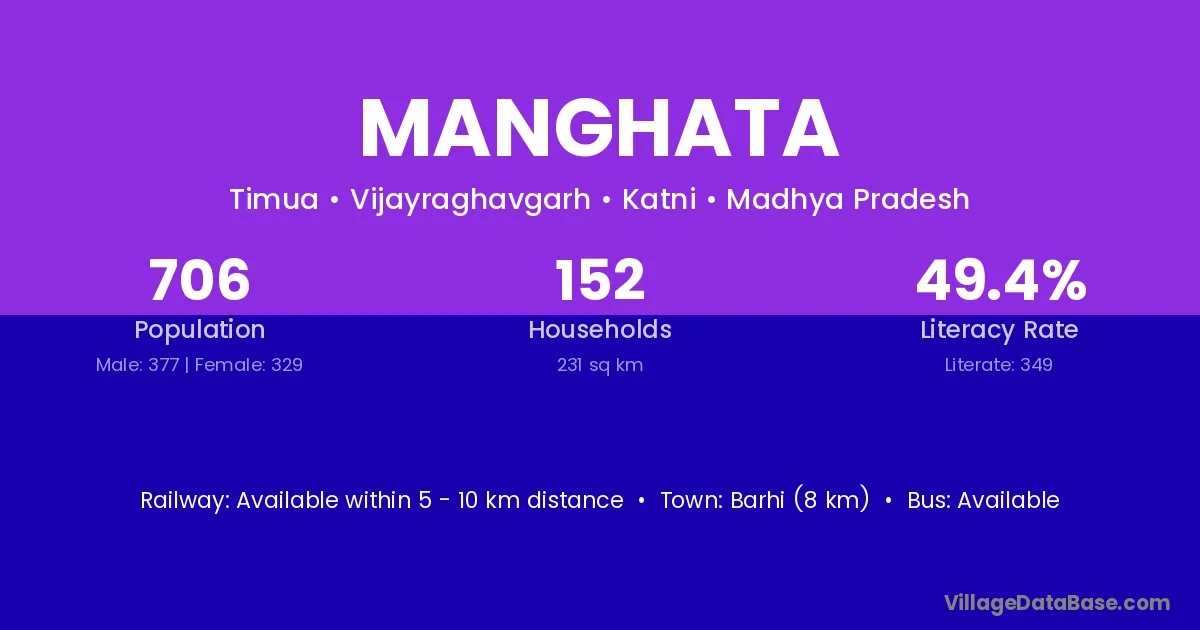 Barhi (8 km) is the nearest town to Manghata village for major economic activities and is located approximately 8 km away.