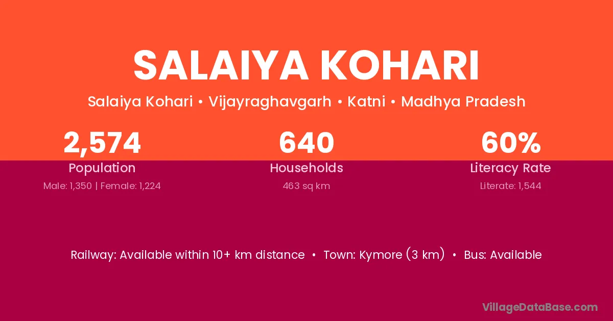 Kymore (3 km) is the nearest town to Salaiya Kohari village for major economic activities and is located approximately 3 km away.