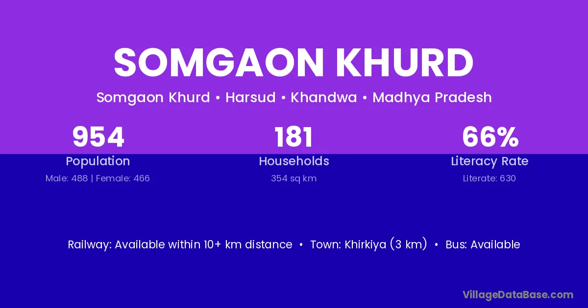 Somgaon Khurd village has a total population of 954 people, of which 488 are males and 466 are females.