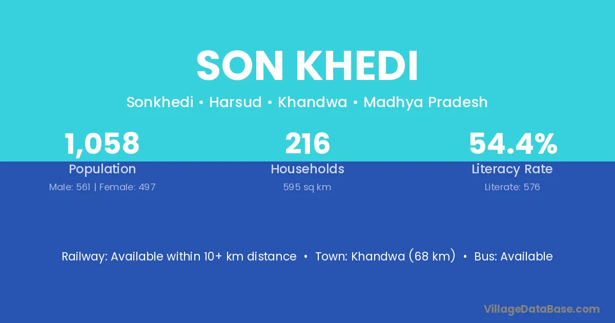 Son Khedi village has a total population of 1,058 people, of which 561 are males and 497 are females.