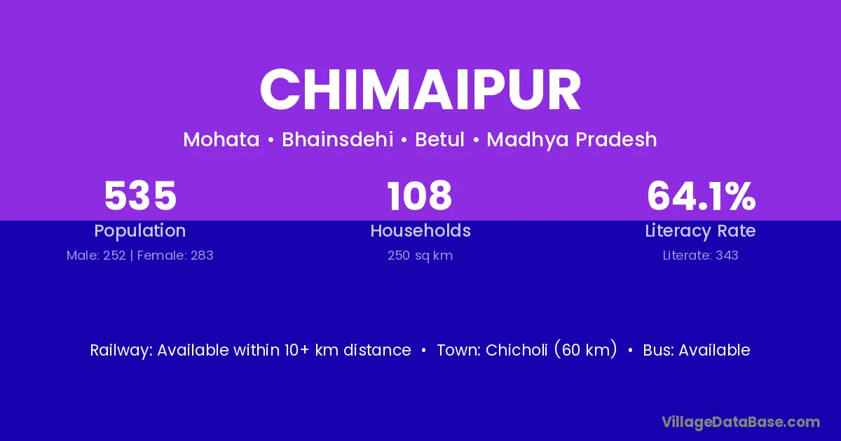 Chanera(harsud) (35 km) is the nearest town to Chimaipur village for major economic activities and is located approximately 35 km away.
