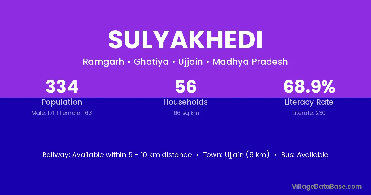 Khandwa (20 km) is the nearest town to Sulyakhedi village for major economic activities and is located approximately 20 km away.