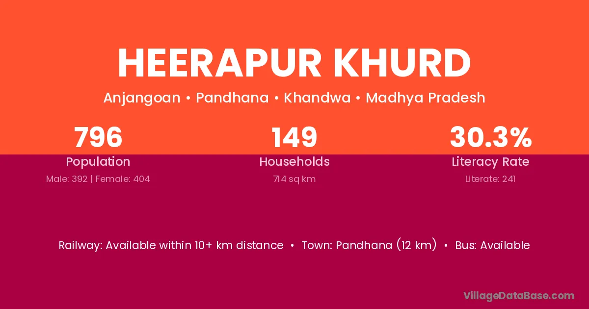 Pandhana (12 km) is the nearest town to Heerapur Khurd village for major economic activities and is located approximately 12 km away.