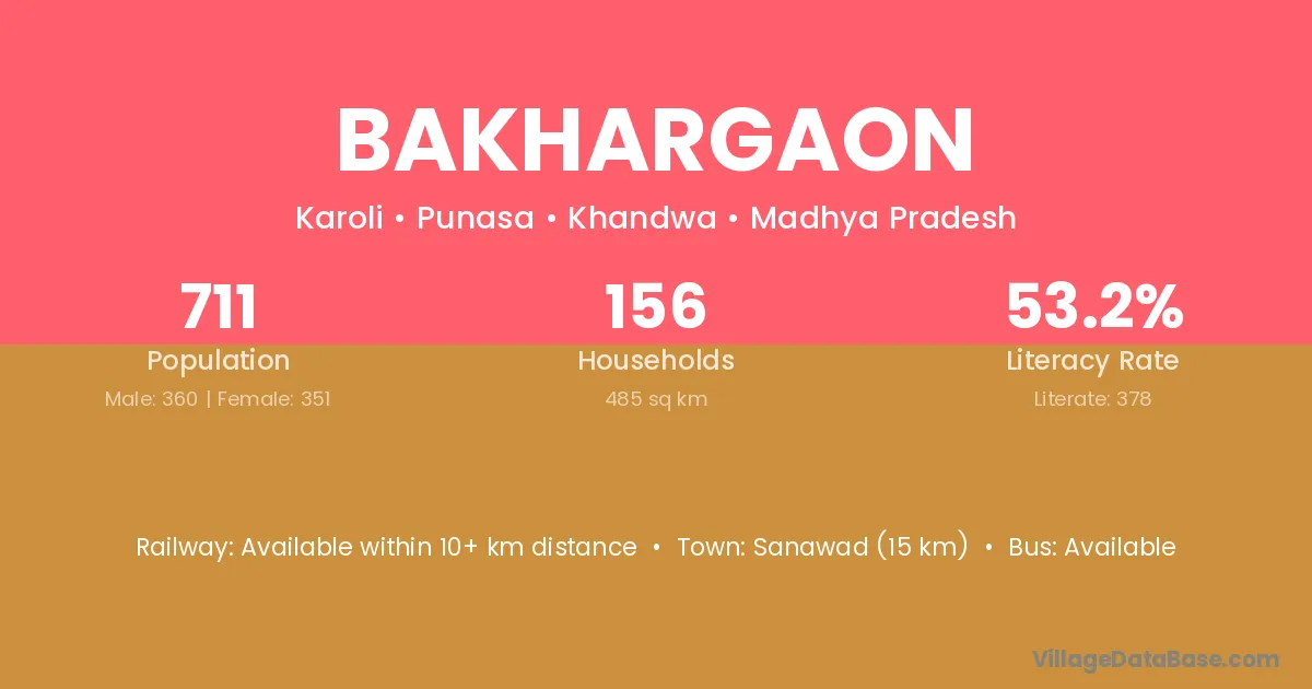 Sanawad (15 km) is the nearest town to Bakhargaon village for major economic activities and is located approximately 15 km away.