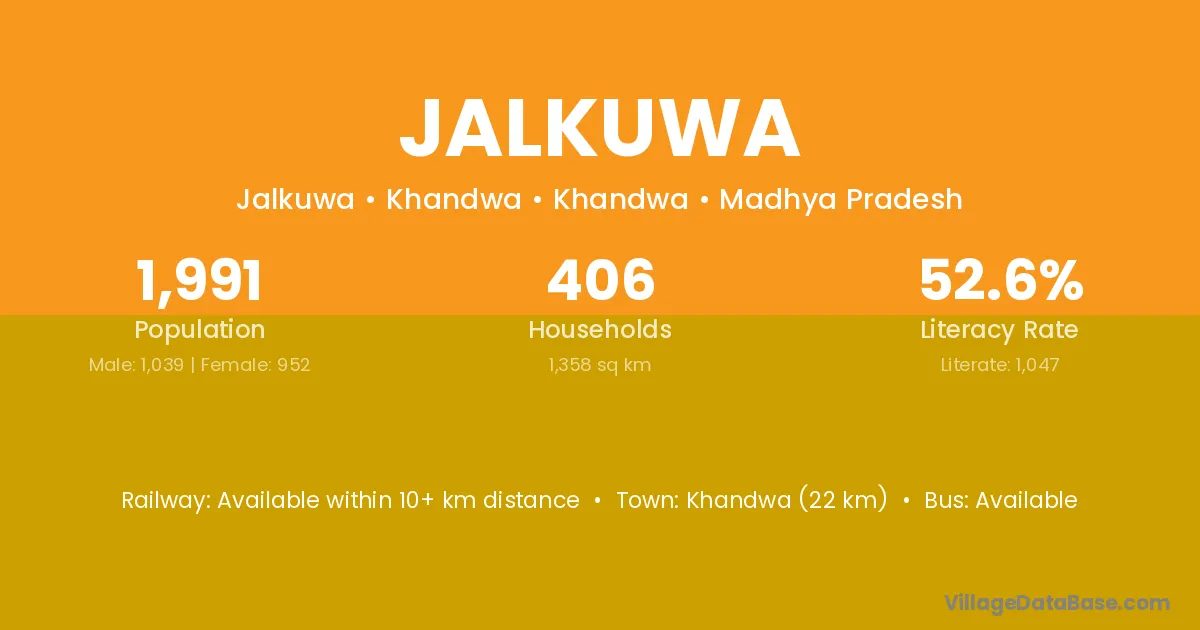 Mundi (9 km) is the nearest town to Jalkuwa village for major economic activities and is located approximately 9 km away.