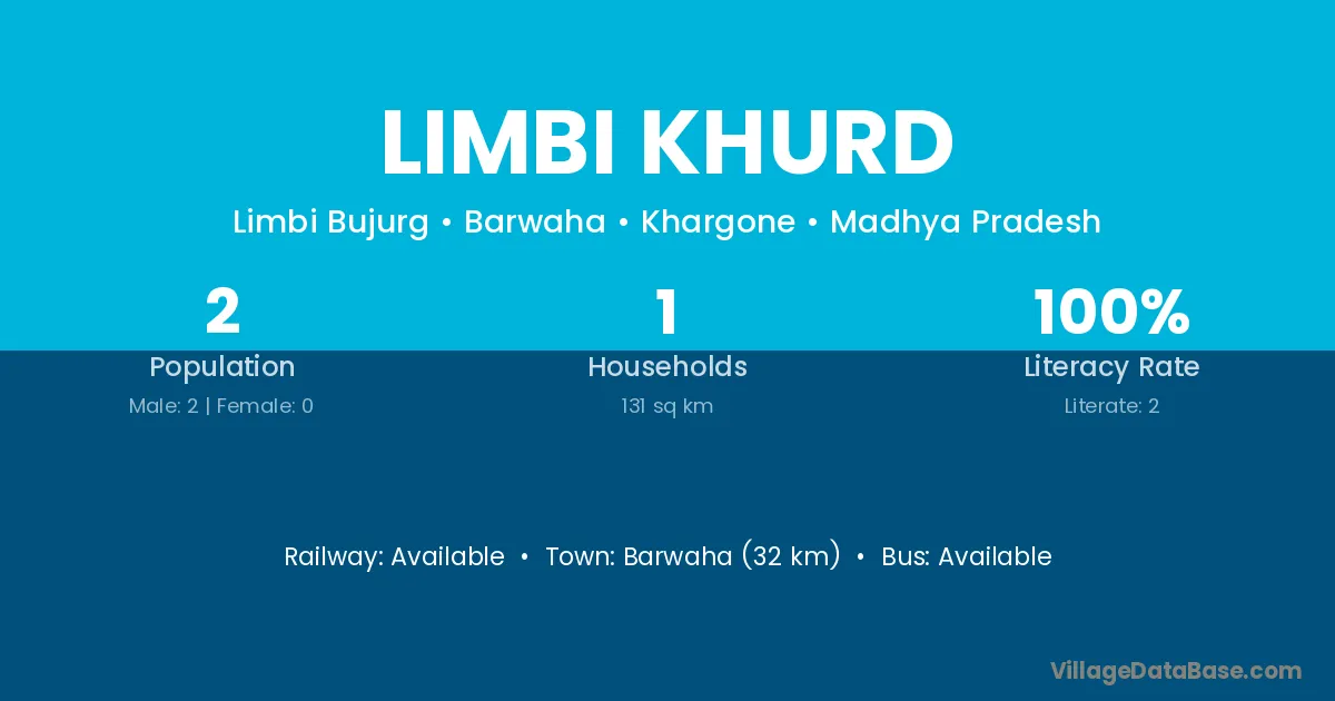 Barwaha (32 km) is the nearest town to Limbi Khurd village for major economic activities and is located approximately 32 km away.