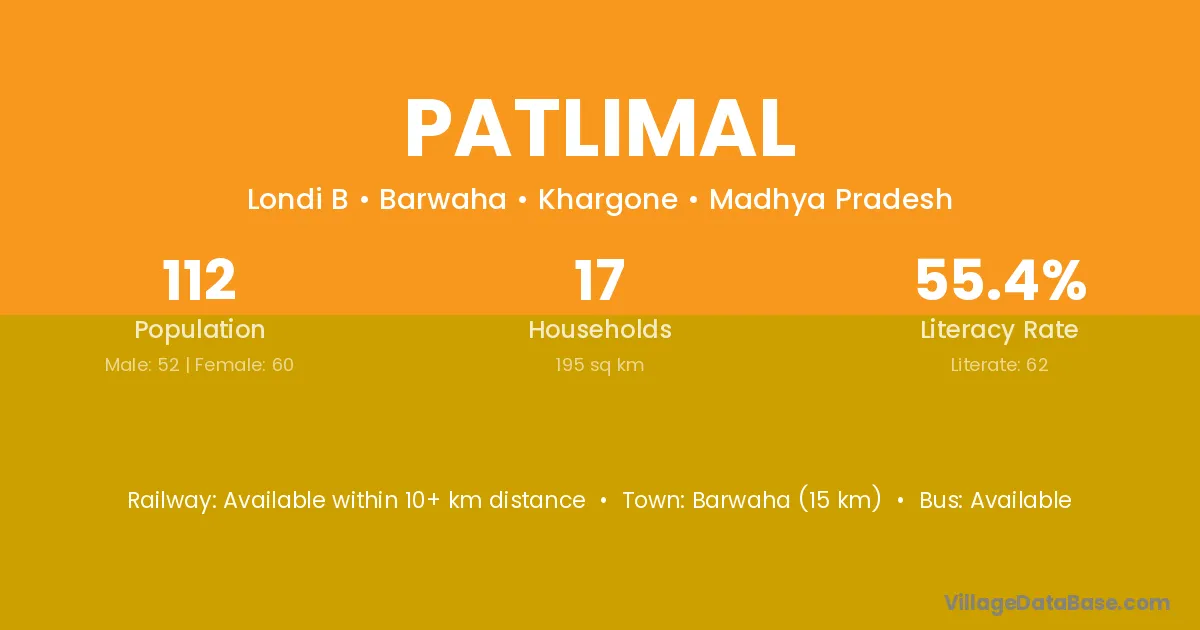 Barwaha (15 km) is the nearest town to Patlimal village for major economic activities and is located approximately 15 km away.