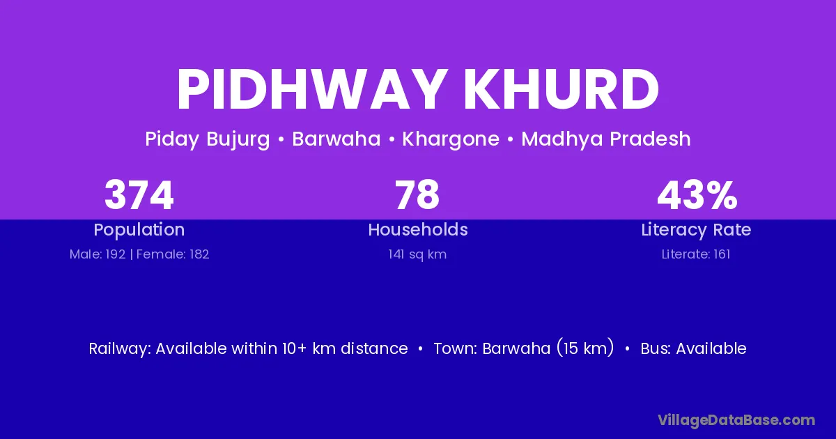 Barwaha (15 km) is the nearest town to Pidhway Khurd village for major economic activities and is located approximately 15 km away.