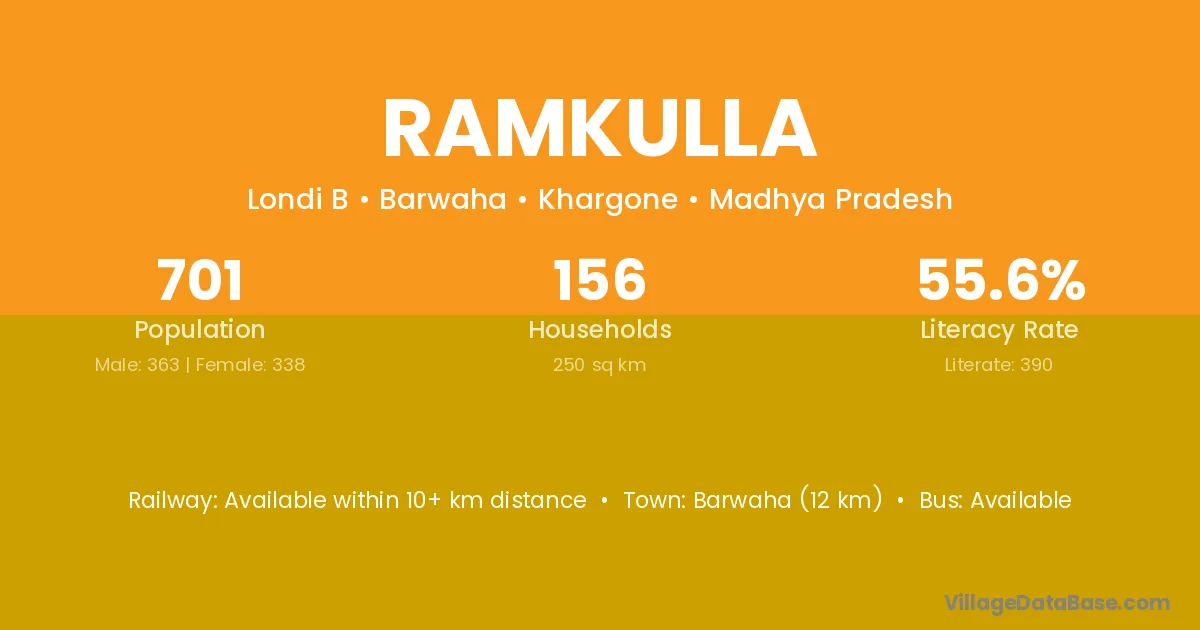 Barwaha (12 km) is the nearest town to Ramkulla village for major economic activities and is located approximately 12 km away.