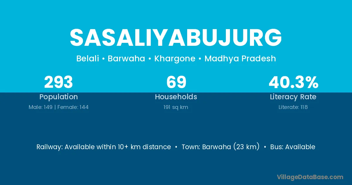 Barwaha (23 km) is the nearest town to Sasaliyabujurg village for major economic activities and is located approximately 23 km away.