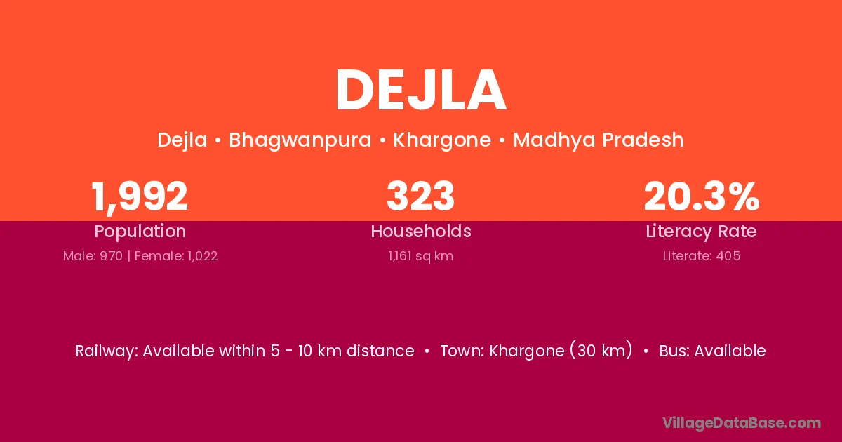 Khargone (30 km) is the nearest town to Dejla village for major economic activities and is located approximately 30 km away.