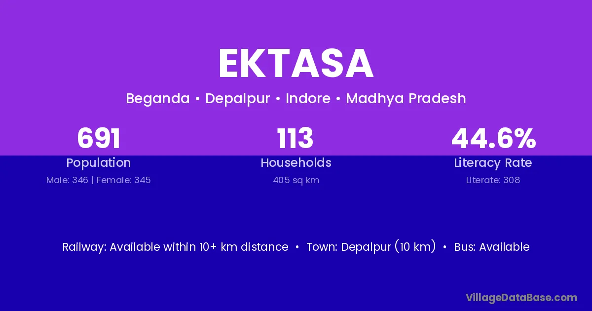 Bhikangaon (13 km) is the nearest town to Ektasa village for major economic activities and is located approximately 13 km away.