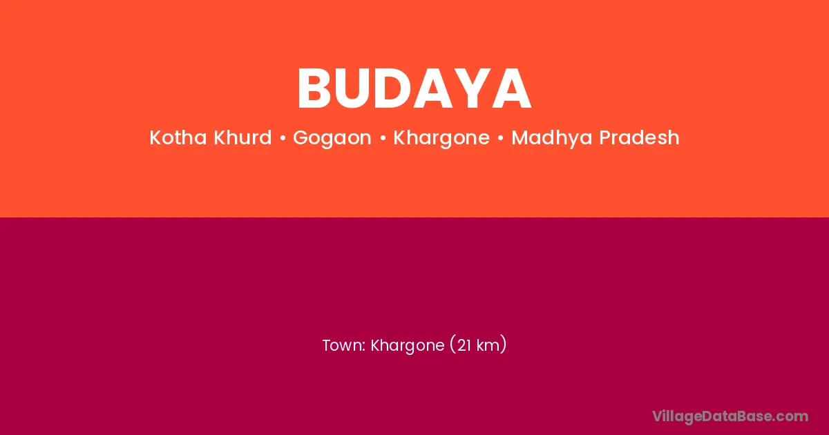 Khargone (21 km) is the nearest town to Budaya village for major economic activities and is located approximately 21 km away.